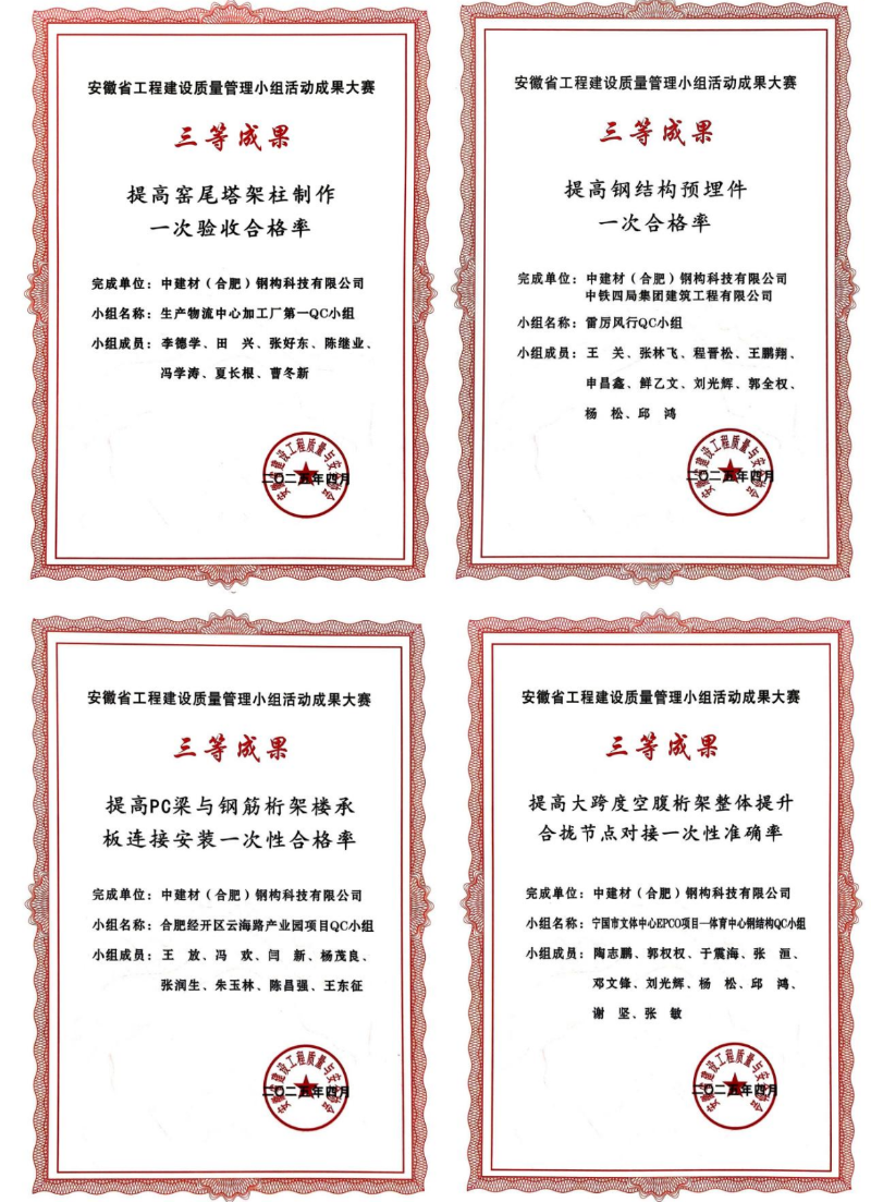 近日,在安徽省工程建設(shè)質(zhì)量管理小組活動(dòng)成果大賽上,中建材鋼構(gòu)公司憑借扎實(shí)的技術(shù)功底、卓越的質(zhì)量管理水平和持續(xù)的創(chuàng)新精神,一舉斬獲10項(xiàng)優(yōu)秀成果大獎(jiǎng)!其中包括2項(xiàng)二等獎(jiǎng)、8項(xiàng)三等獎(jiǎng),獲獎(jiǎng)數(shù)量和質(zhì)量均位居行業(yè)前列,充分展現(xiàn)了中建材鋼構(gòu)公司在工程建設(shè)領(lǐng)域強(qiáng)大的綜合實(shí)力和核心競爭力。