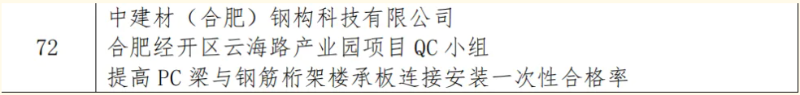 本次競(jìng)賽旨在深入貫徹落實(shí)《質(zhì)量強(qiáng)國(guó)建設(shè)綱要》精神,引導(dǎo)鋼木建筑行業(yè)企業(yè)科學(xué)運(yùn)用先進(jìn)質(zhì)量管理方法,全面提升工程質(zhì)量管理水平。全國(guó)各地眾多鋼木建筑企業(yè)踴躍參賽,競(jìng)爭(zhēng)異常激烈。公司高度重視此次競(jìng)賽,精心組織內(nèi)部質(zhì)量管理小組進(jìn)行成果申報(bào)。最終,公司多個(gè)質(zhì)量管理小組的項(xiàng)目成果在一眾參賽作品中成功突圍。其中,合肥經(jīng)開(kāi)區(qū)云海路產(chǎn)業(yè)園項(xiàng)目QC小組的“提高 PC 梁與鋼筋桁架樓承板連接安裝一次性合格率”課題榮獲二等獎(jiǎng)。該成果聚焦鋼桁梁底部作業(yè)難題,通過(guò)技術(shù)創(chuàng)新,大幅提高了施工效率與安全性,為業(yè)內(nèi)同類(lèi)工程提供了極具價(jià)值的實(shí)踐范例。此外,中建材鋼構(gòu)公司還有6項(xiàng)成果榮獲三等獎(jiǎng),獲獎(jiǎng)成果覆蓋鋼結(jié)構(gòu)制造、安裝以及施工工藝優(yōu)化等多個(gè)領(lǐng)域,均是公司質(zhì)量管理小組在實(shí)際工程項(xiàng)目中,運(yùn)用科學(xué)方法,深耕技術(shù)創(chuàng)新與質(zhì)量改進(jìn)工作的結(jié)晶。